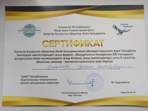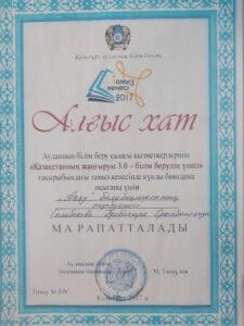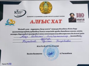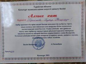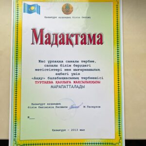 «Аққу» бөбекжай бақшасының МКҚК меңгерушісі Ибраимова Гаухар Тасқұлқызы