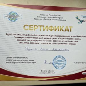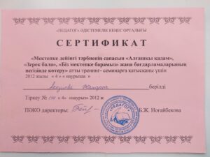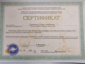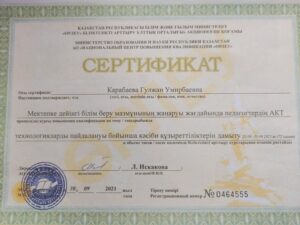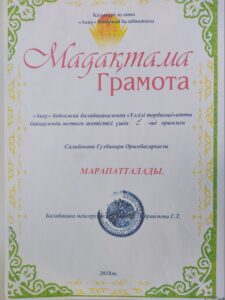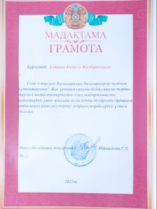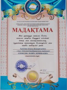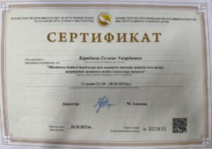 «Аққу» бөбекжай бақшасының МКҚК әдіскері Карабаева Гулжан Умирбаевна