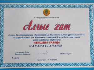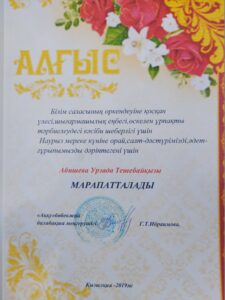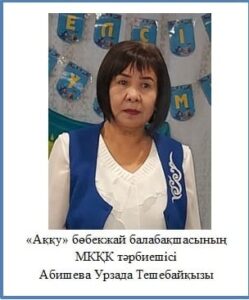 «Аққу» бөбекжай бақшасының МКҚК тәрбиешісі Абишова Урзада Тешебайқызы