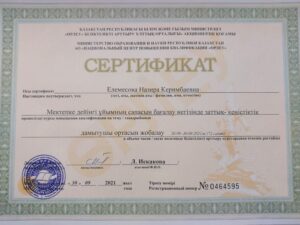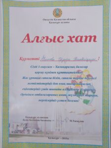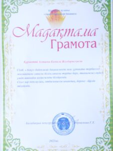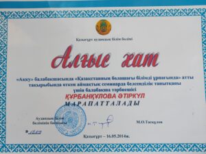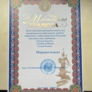 «Аққу» бөбекжай бақшасының МКҚК тәрбиешісі Алтаева Камила Жолбарысқызы