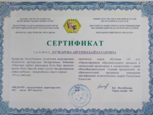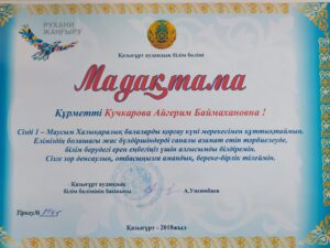 «Аққу» бөбекжай бақшасының МКҚК тәрбиешісі Кучкарова Айгерим Баймаханқызы