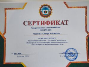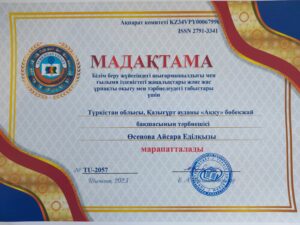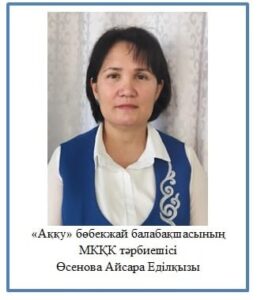 «Аққу» бөбекжай бақшасының МКҚК тәрбиешісі Өсенова Айсара Еділқызы