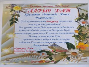 «Аққу» бөбекжай бақшасының МКҚК тәрбиешісі Аккулиева Жанар Дәуітқызы