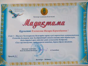 «Аққу» бөбекжай бақшасының МКҚК тәрбиешісі Елемесова Назира Керімбайқызы
