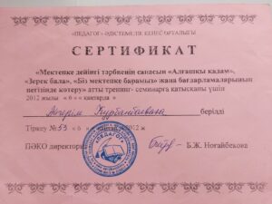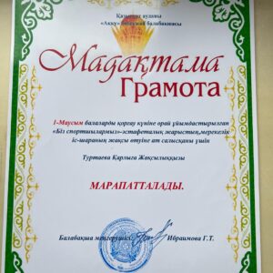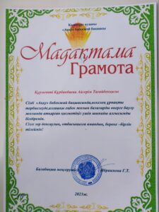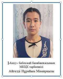 «Аққу» бөбекжай бақшасының МКҚК тәрбиешісі Айгелді Нұрайым Мамирқызы