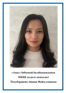 «Аққу» бөбекжай бақшасының МКҚК педагог-психологі Тілеубердиева Айдана Файзуллақызы