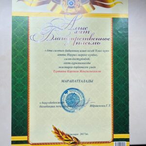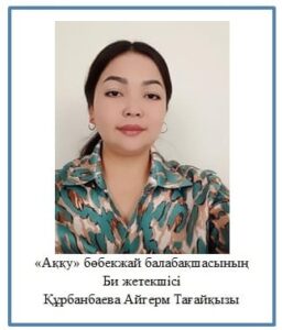 «Аққу» бөбекжай бақшасының МКҚК тәрбиешісі Құрбанқұлова Әтіркүл Кураковна