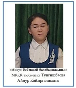 «Аққу» бөбекжай бақшасының МКҚК тәрбиешісі Тұңғышбаева Айнур Қайырғалиқызы