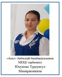 «Аққу» бөбекжай бақшасының МКҚК тәрбиешісі Юсупова Тұрсынкүл Мамиржонқызы